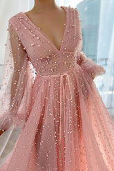 Sparkle in Style with Pink Plunging Neck Evening Dress With Pearl Beaded TulleWe could custom made 70+ colors & all sizes, if you do not find the color name listed, pls leave a message with special instructions to note the exact color you need. Also custom size is available, if you need your dress customized, pls...