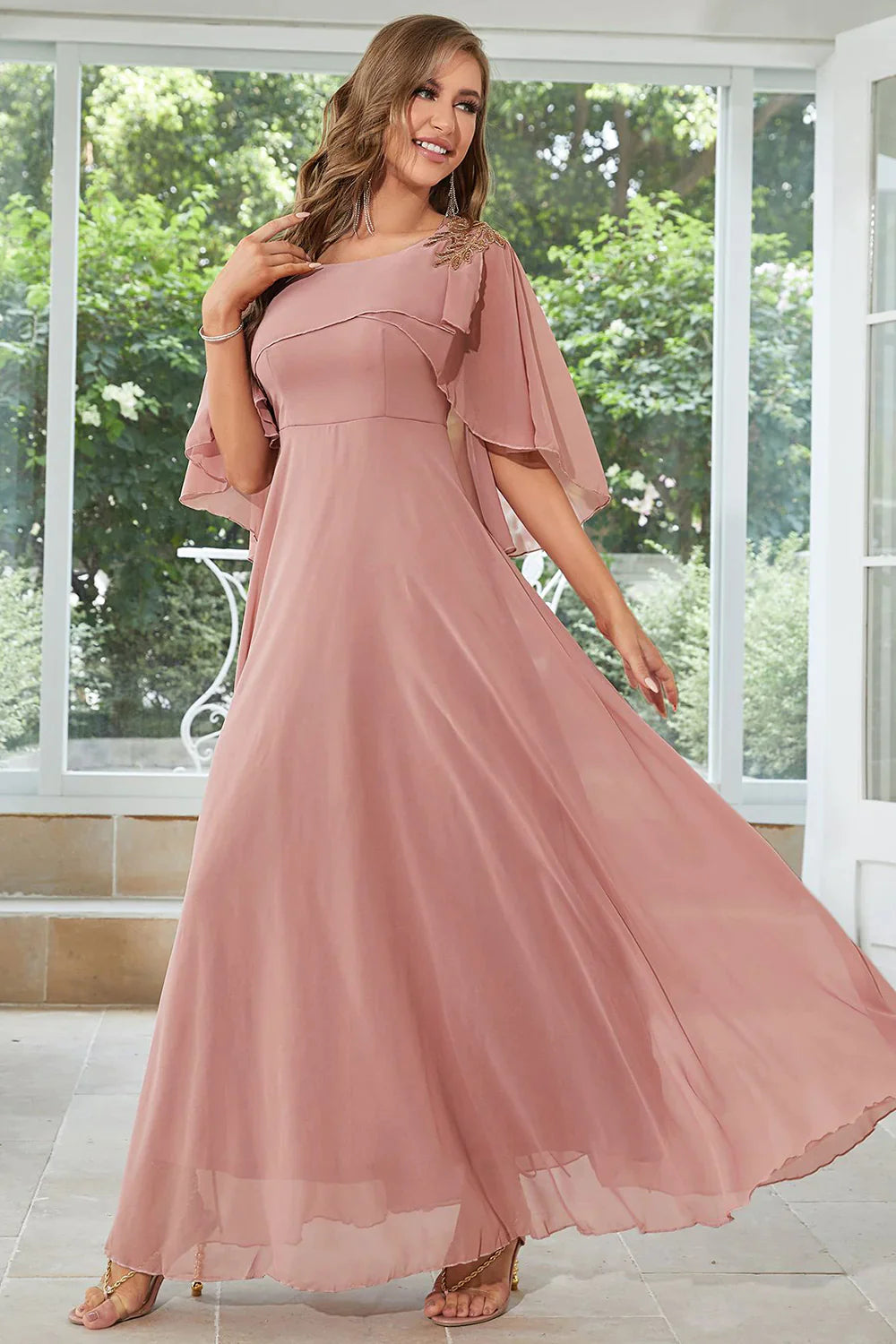 2023 Short Sleeve Appliques Chiffon Long Party Dress