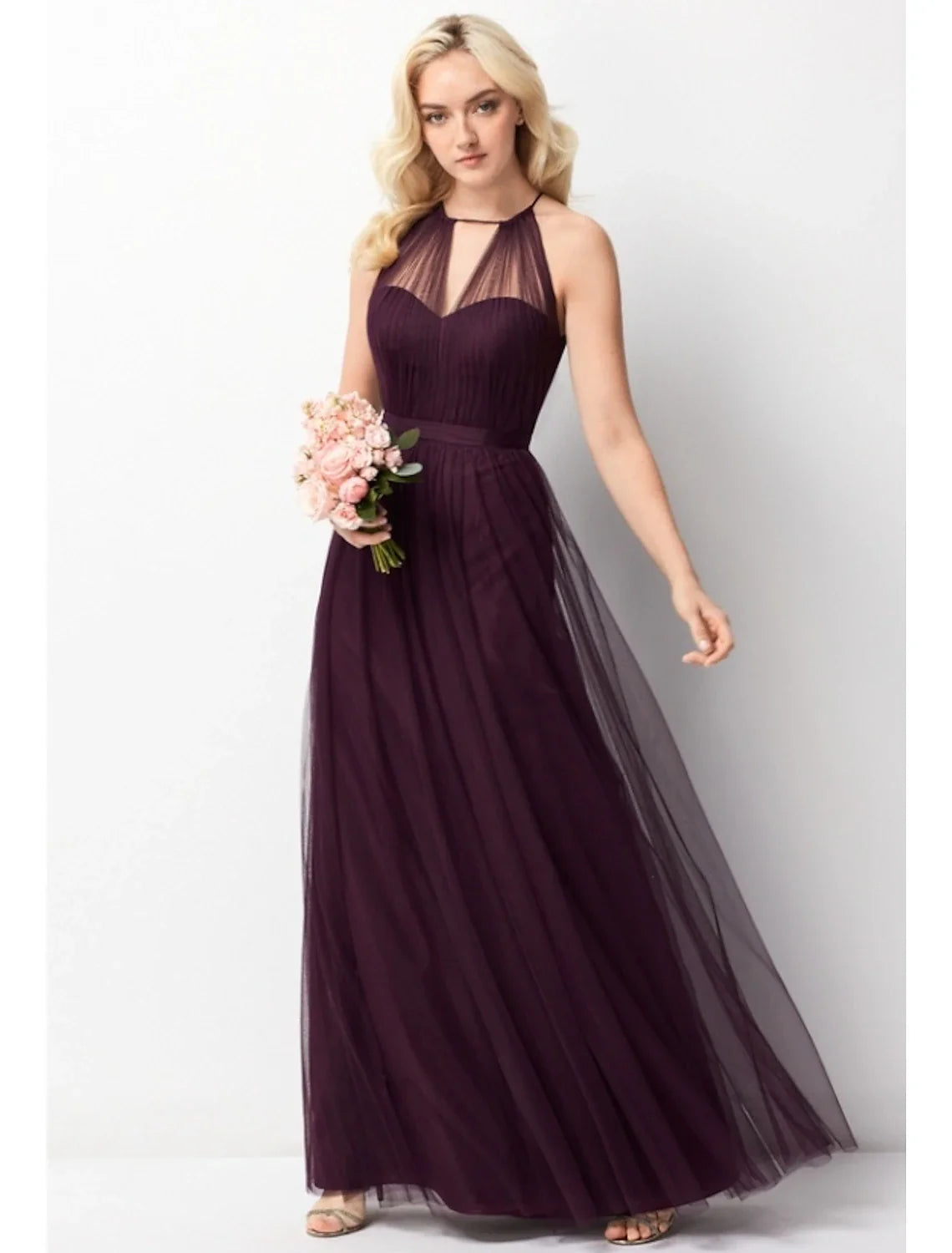 A-Line Bridesmaid Dress Halter Neck Sleeveless Elegant Floor Length Chiffon / Tulle with