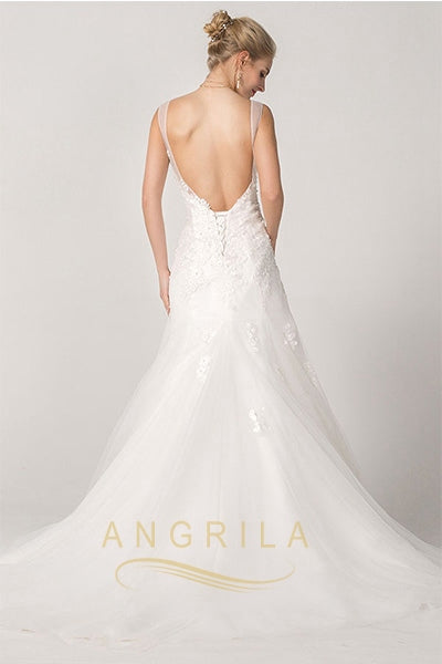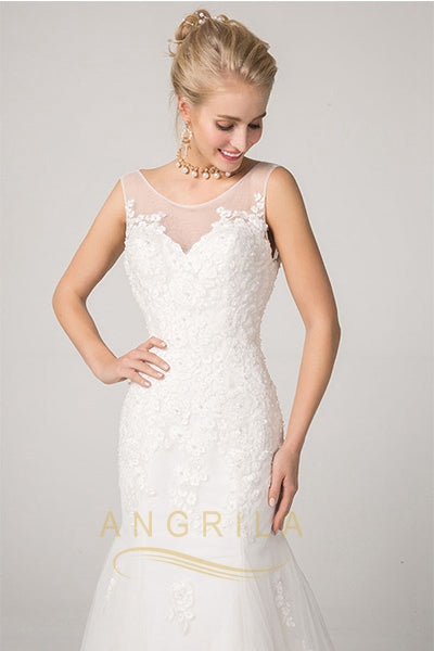 Classic Open Back Lace Appliques Sleeveless Mermaid Bridal Wedding Dresses