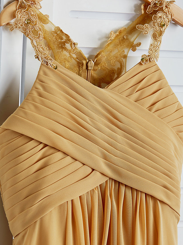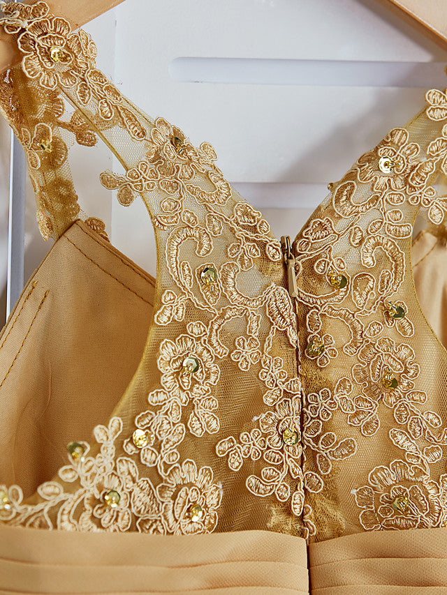 A-Line Halter Neck Flower Girl Dress with Chiffon and Appliques