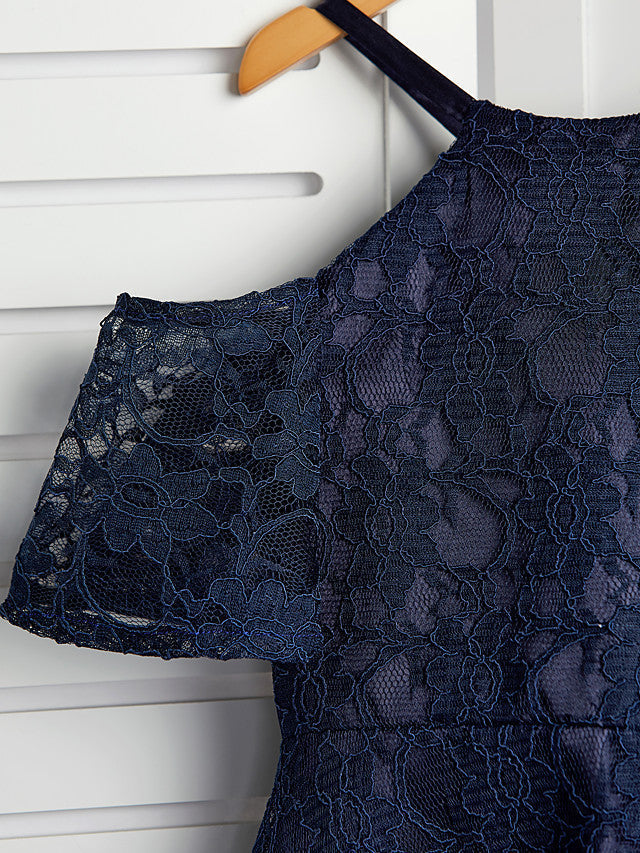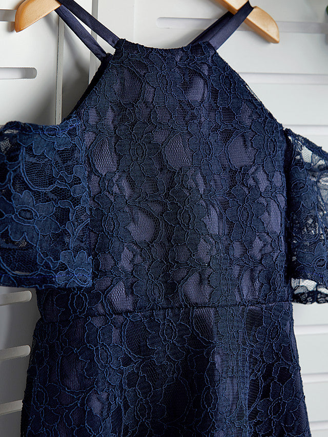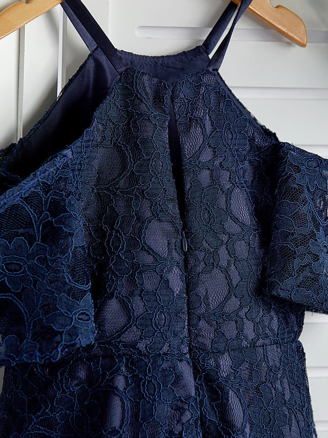 A-Line Halter Neck Lace Flower Girl Dress for Knee Length