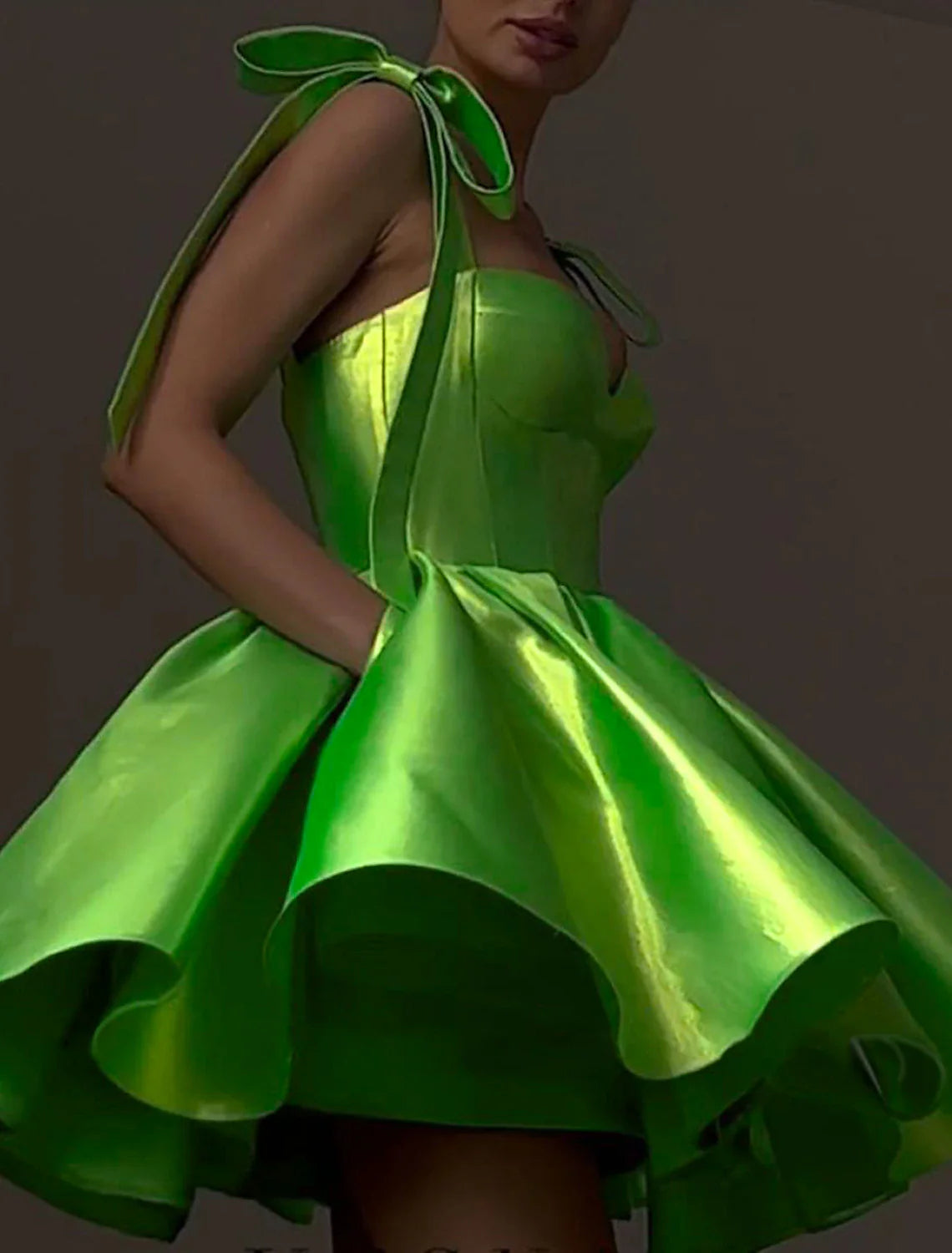 A-Line Homecoming Dresses Corsets Dress Holiday Graduation Short / Mini Sleeveless Spaghetti Strap Pink Dress Satin with Bow(s)