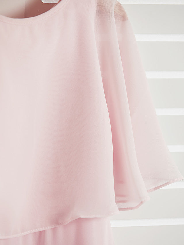 A-Line Jewel Half Sleeves Dress with Ruffles for Flower Girls