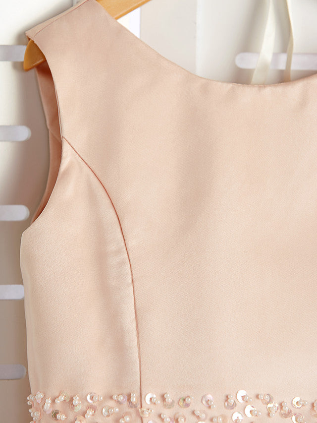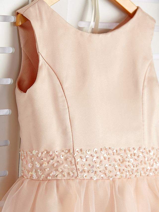 A-Line Jewel Neck Organza Satin Flower Girl Dress With Beading Tier