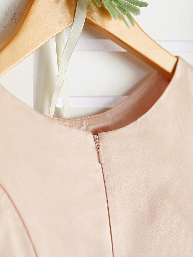Style: ElegantSilhouette: Sheath / ColumnHemline / Train: Knee LengthNeckline: Jewel NeckFabric: SatinClosure: Zipper UPSleeve Length: Short SleeveEmbellishment: AppliquesTips: Colors may vary slightly due to different monitor settings, Hand Wash OnlyWrap: No