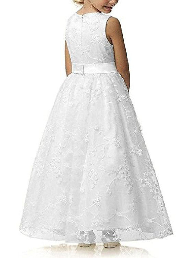A-Line Jewel Sleeveless Flower Girl Dress with Lace and Belt