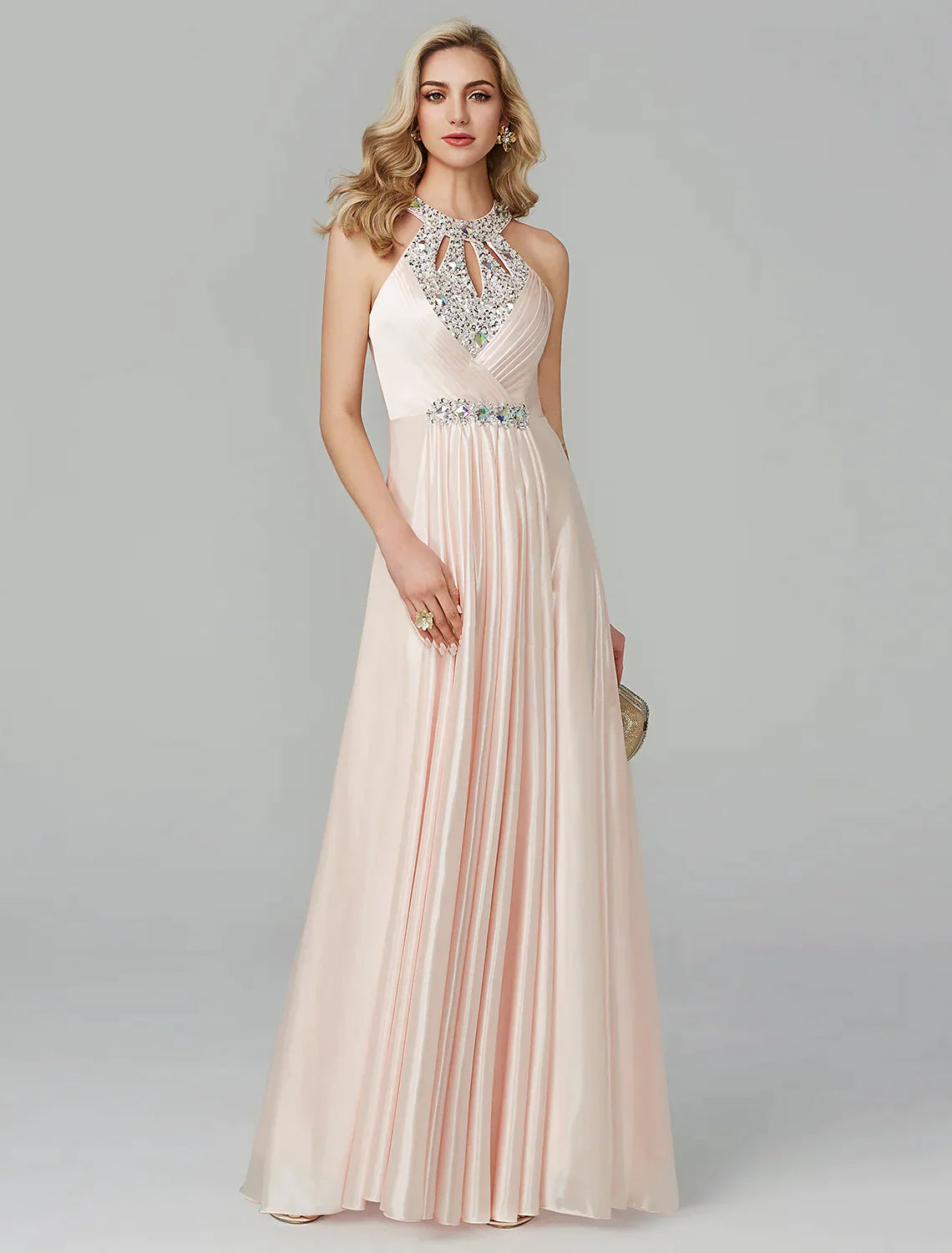 A-Line Little Black Dress Dress Party Wear Floor Length Sleeveless Silk Backless with Crystals Sequin