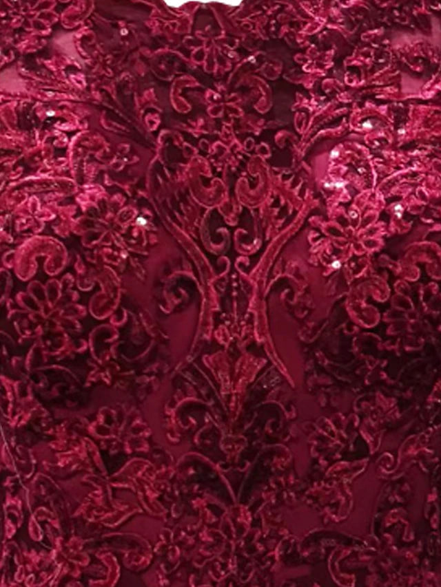 A-Line Mother of the Bride Dress Elegant Jewel Neck Sweep / Brush Train Chiffon Lace Short Sleeve with Appliques