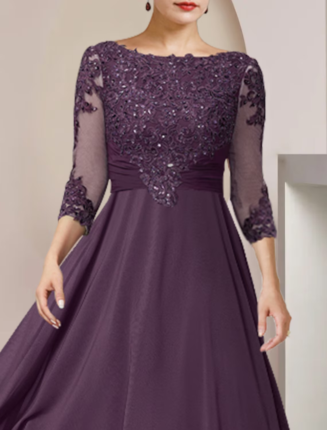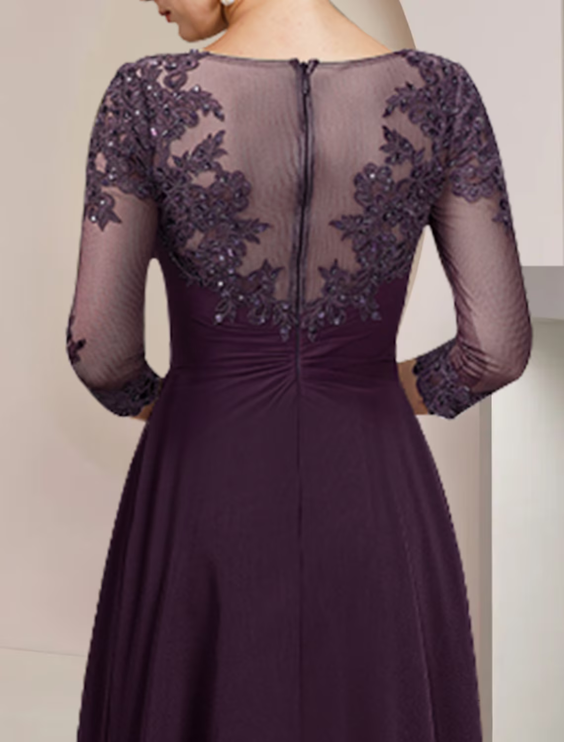 A-Line Mother of the Bride Dress Formal Wedding Guest Elegant High Low Scoop Neck Asymmetrical Chiffon Lace Sleeve with Sequin Tier Appliques