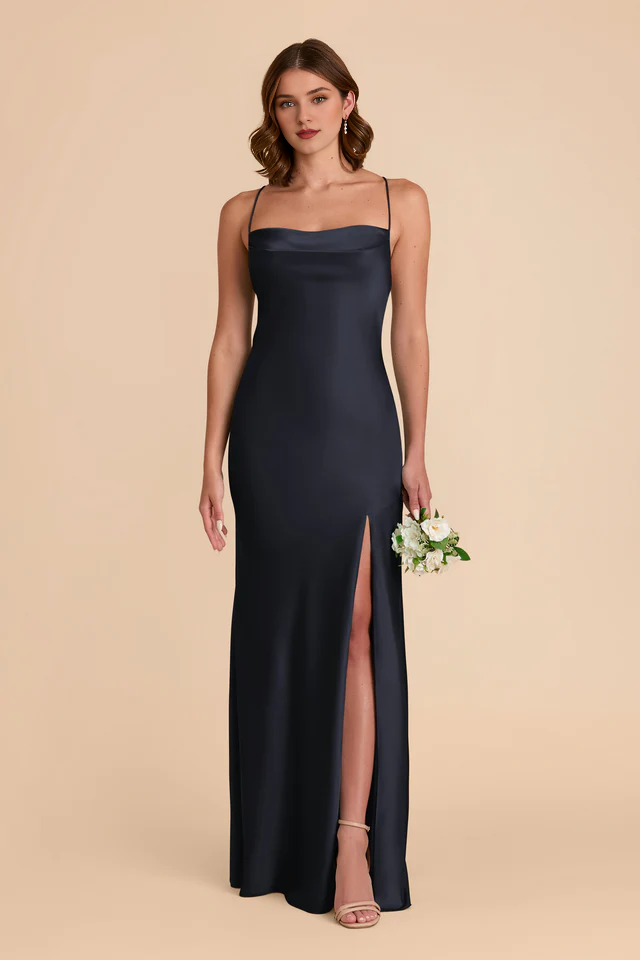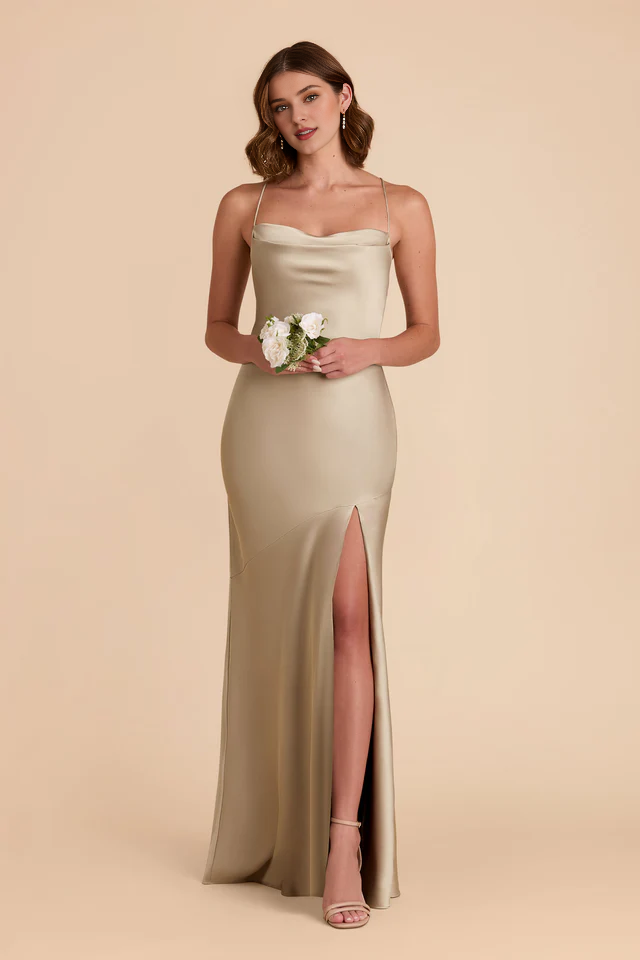 A-line diagonal seam front cross slit hanging neck bridesmaid dress