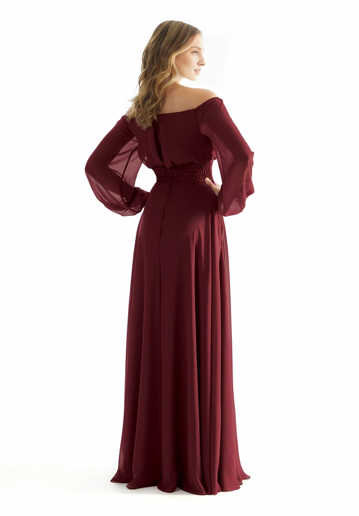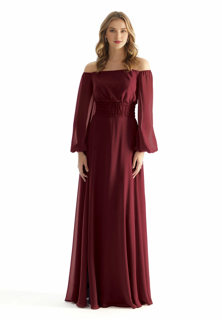 A-line off shoulder collar chiffon pleated Bohemian style bridesmaid dress