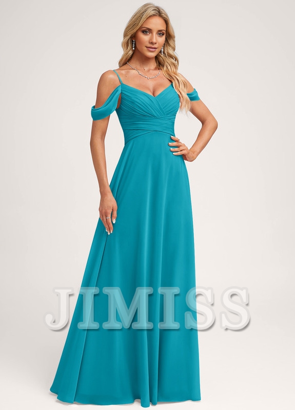 A-line off-shoulder floor-length chiffon bridesmaid dress