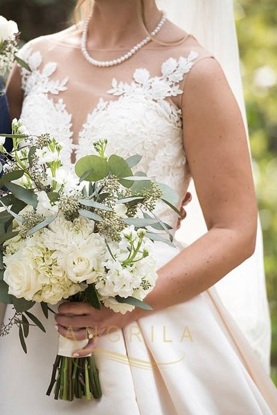 A-Line/Princess Lace Applique Illusion Wedding Dresses