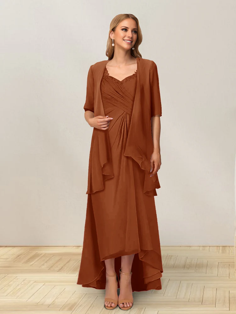 A-line princess sleeveless lotus leaf side length design, mother of the bride dress