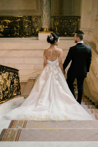 A-line/Princess Spaghetti Straps Lace Applique Wedding Dresses