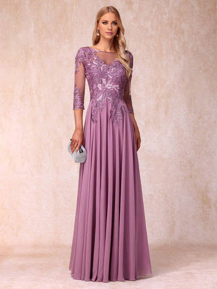 A-line/princess transparent collar 3/4 sleeve length formal mother of the bride dress
