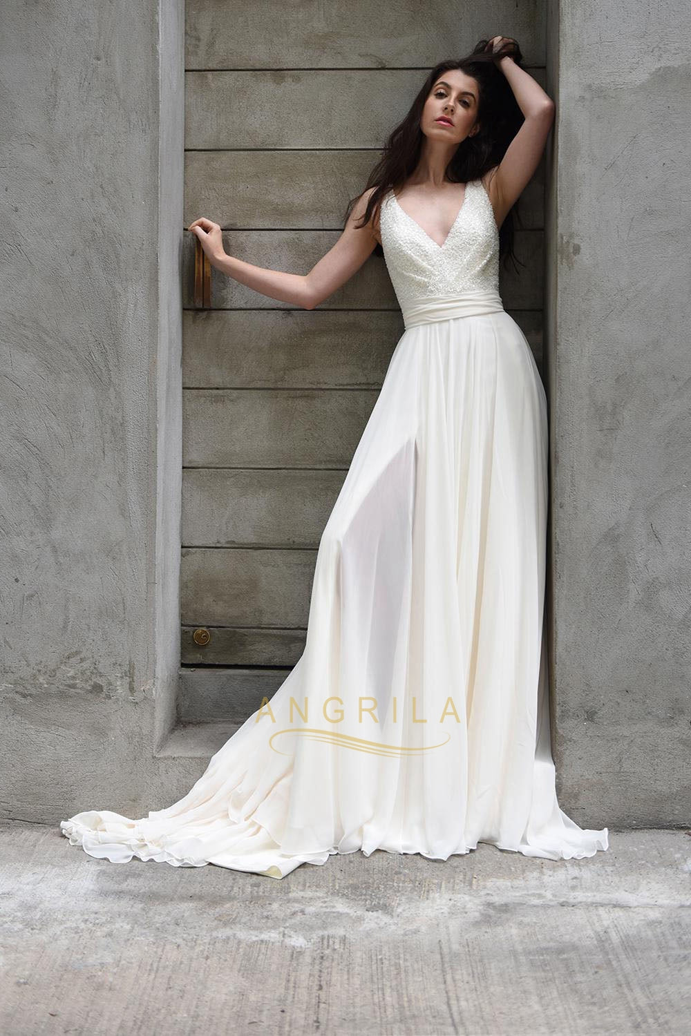 Style: Simple Neckline: V-neck Sleeve Length(cm): Short Wedding Dress Fabric: Satin Train: Chapel Train Origin: CN(Origin) For Pregnant Women: Yes Dresses Length: Floor-Length Back Design: Backless Item Type: Wedding Dresses Sleeve Style: Regular Built-in Bra: Yes is_customized: Yes Decoration: Pleat Fashion Element: simple Waistline: Natural Factors Silhouette: Ball Gown