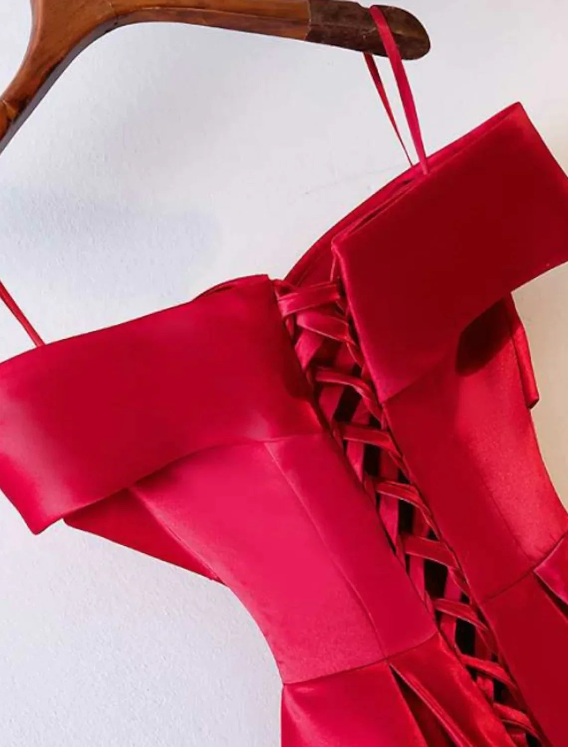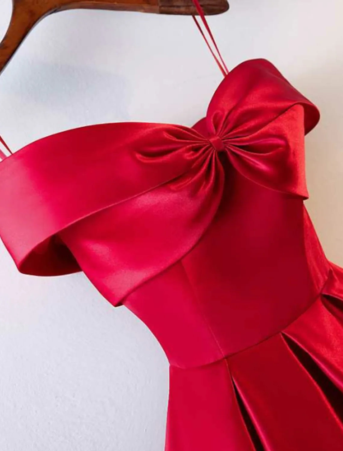A-Line Prom Dresses Open Back Dress Wedding Guest Floor Length Short Sleeve Off Shoulder Satin with Ruched