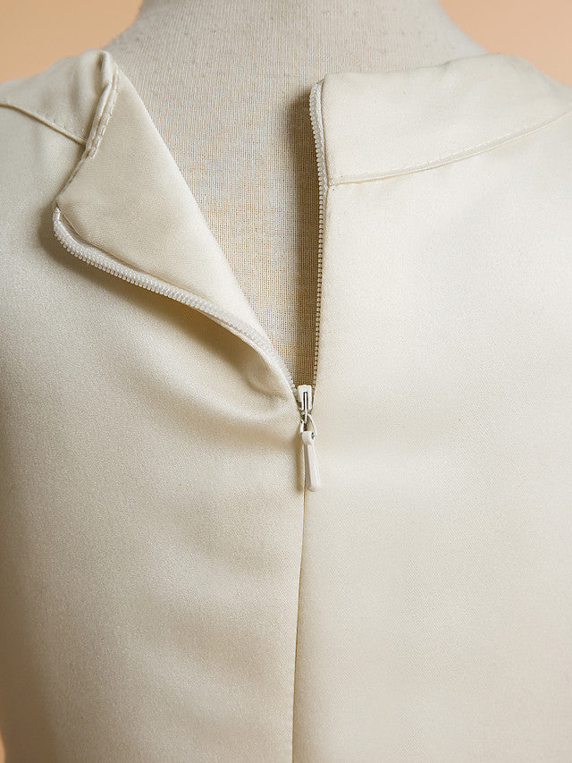 Style: ElegantSilhouette: Sheath / ColumnHemline / Train: Knee LengthNeckline: Jewel NeckFabric: SatinClosure: Zipper UPSleeve Length: Short SleeveEmbellishment: AppliquesTips: Colors may vary slightly due to different monitor settings, Hand Wash OnlyWrap: No