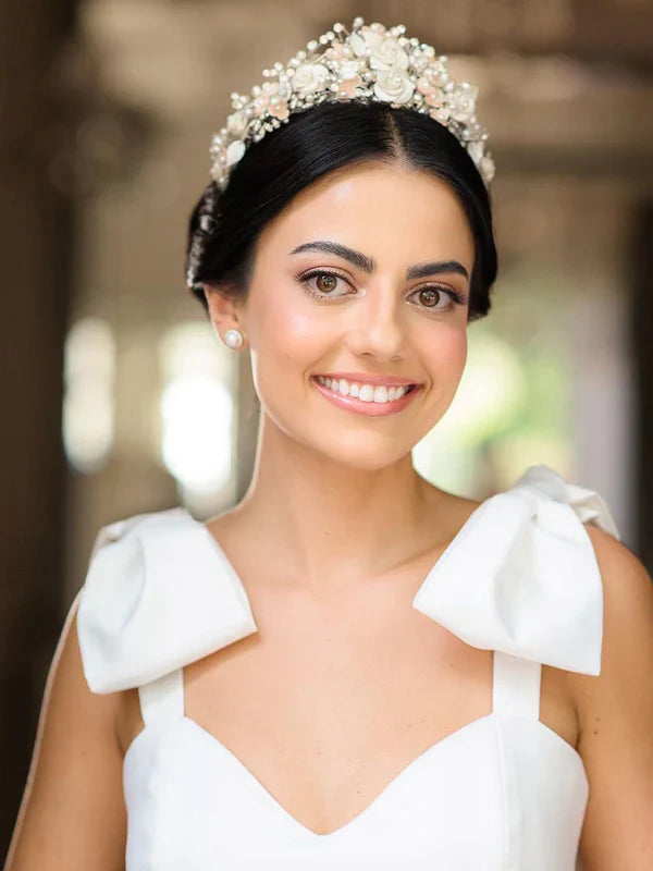 A Line Satin Wedding Gown Sweetheart Neck Wedding Dress With Bowtie Straps