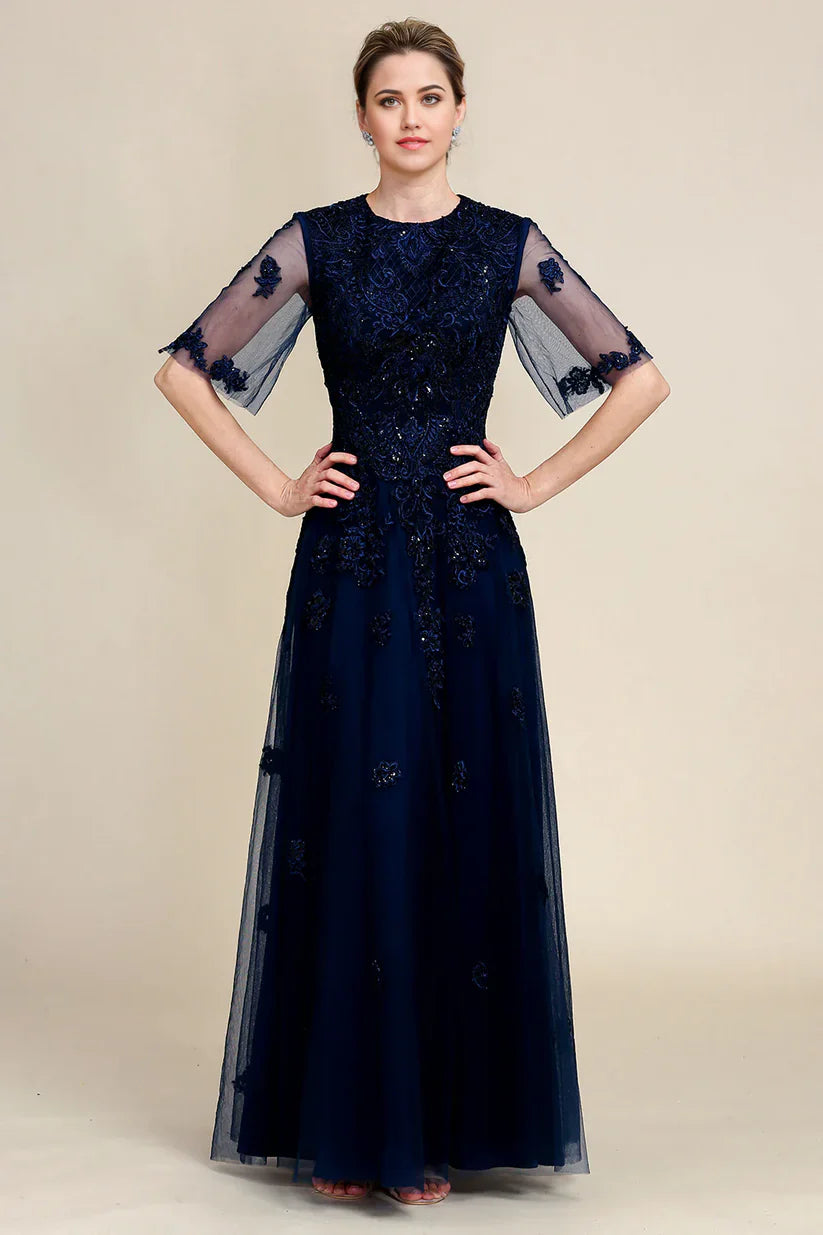 A-line Sparkly Beaded Mother of the Bride Dress with Lace