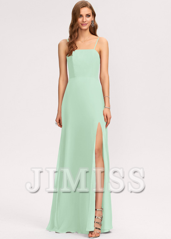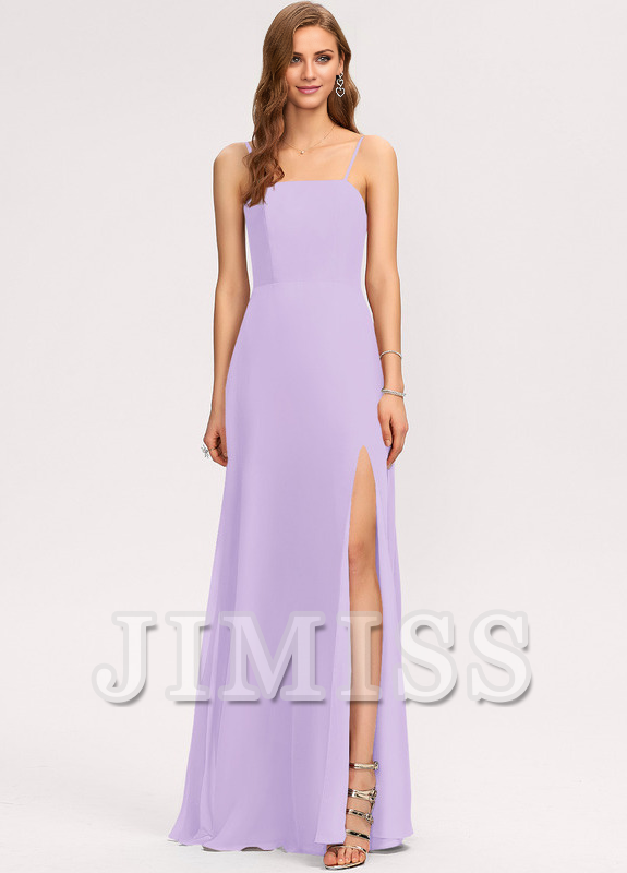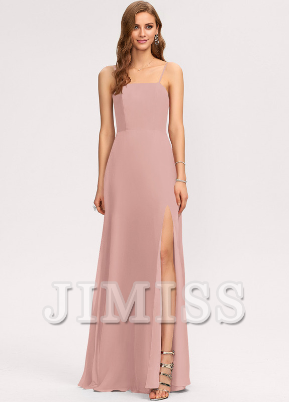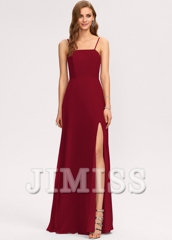 A-line square floor-length chiffon bridesmaid dress