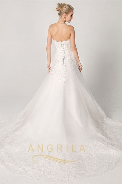 A-line Strapless Sweetheart Lace Applique Bridal Wedding Dresses