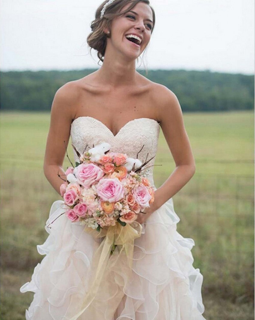 A-line Strapless Sweetheart Ruffles Chapel Train Bridal Wedding Dresses