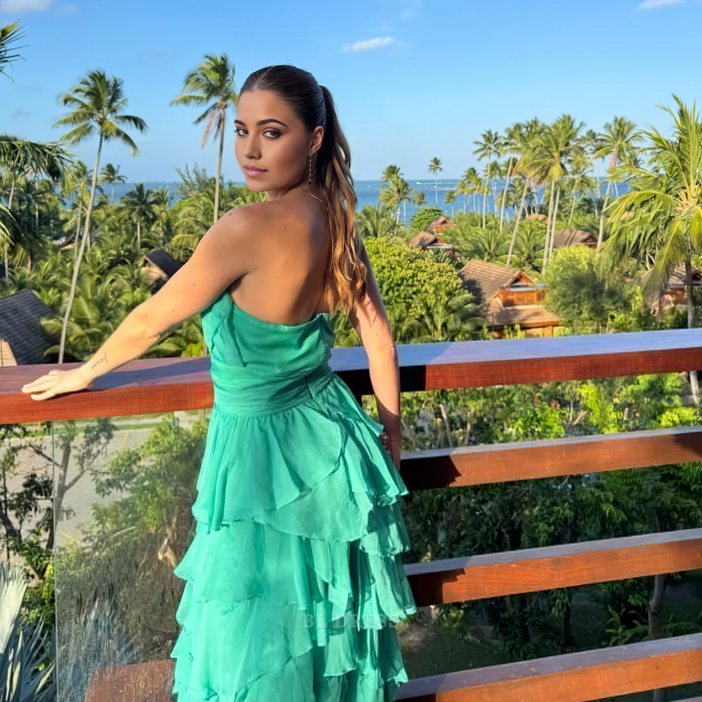 A Line Strapless Tiered Chiffon Long formal dresses Bridesmaid Dresses evening gown Prom Dress