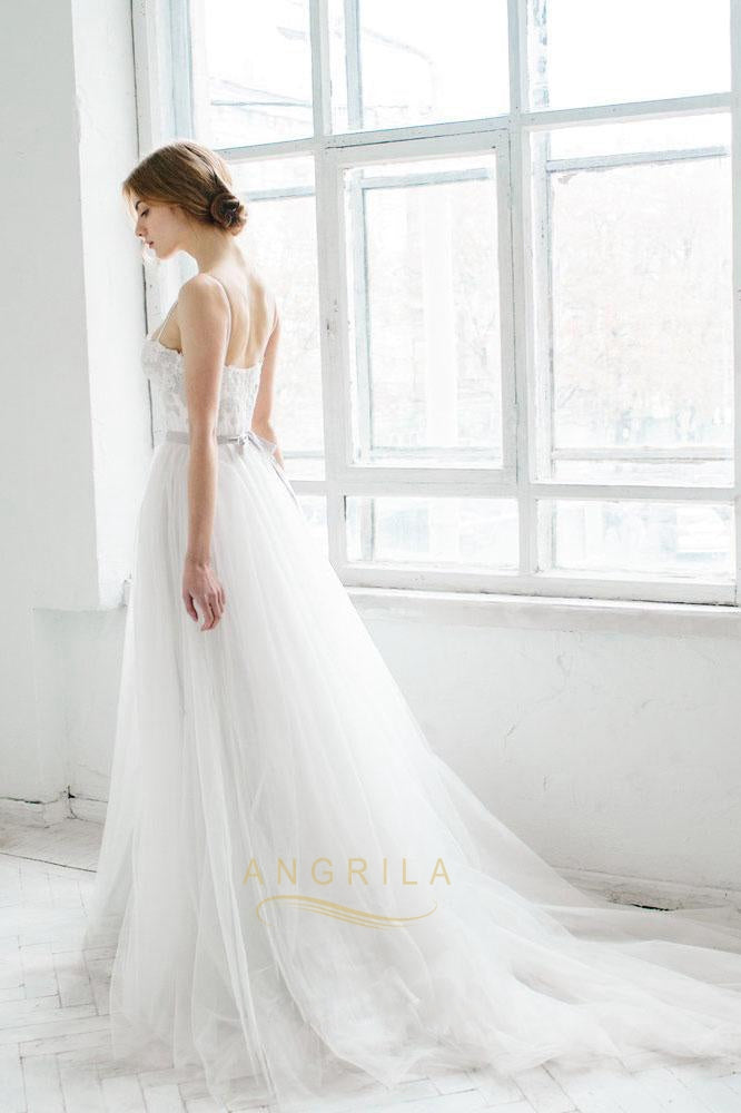 A-Line Sweetheart Tulle Simple Wedding Dresses