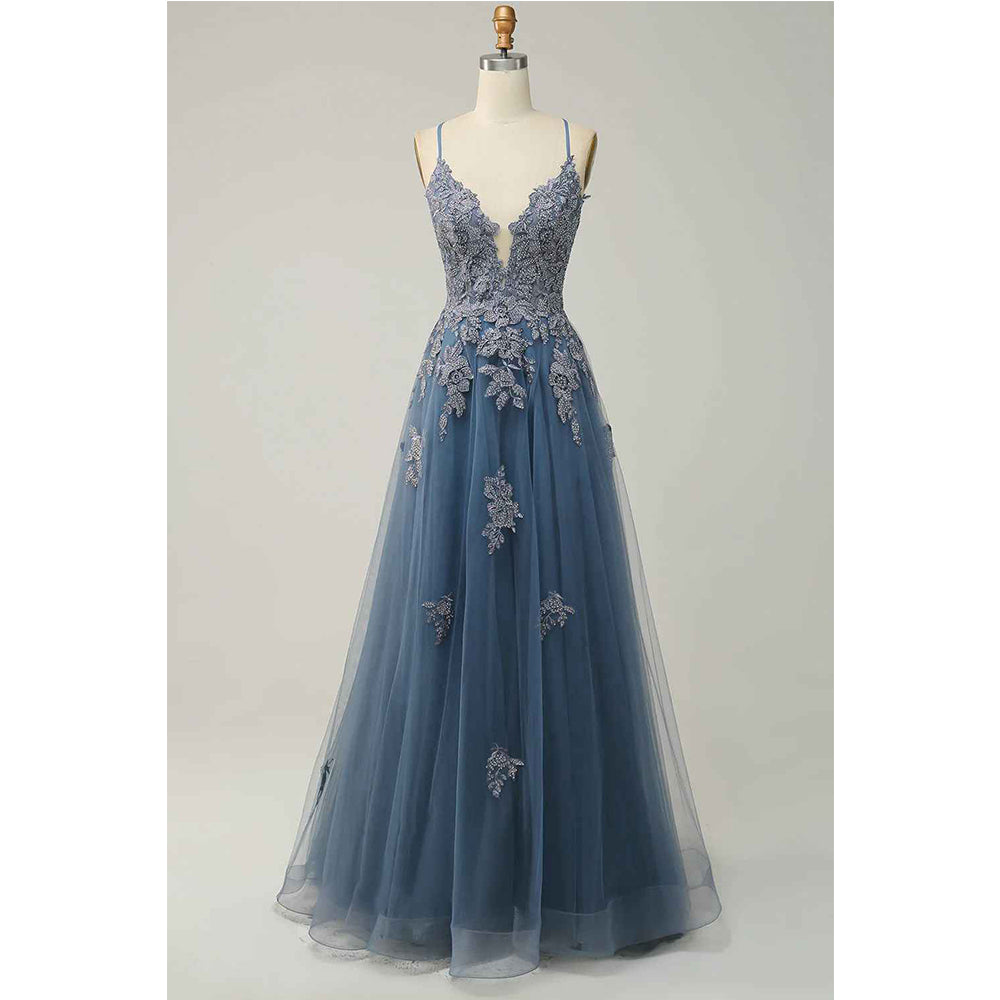 A Line Thin Shoulder Strap Pink Long Decal Prom Dress
