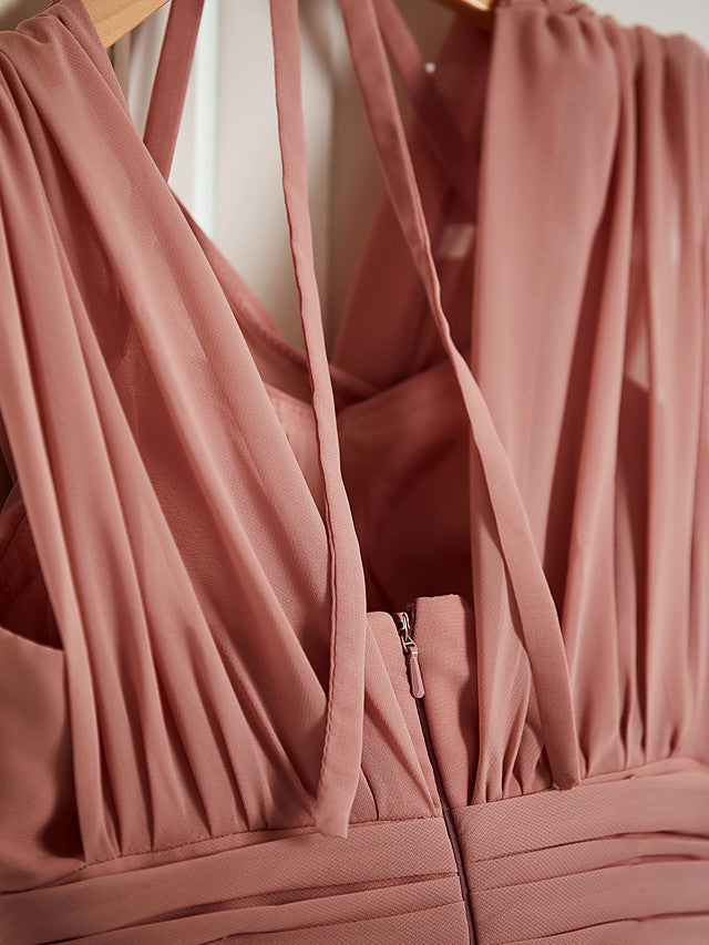A-Line V Neck Flower Girl Dress with Pleats Ruching and Maxi Chiffon