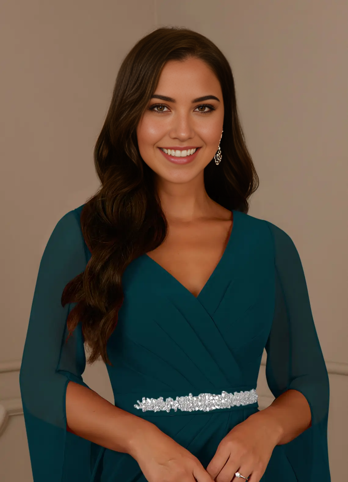 A-Line V-Neck Pleated Chiffon Dress Mother of the Bride Dresses
