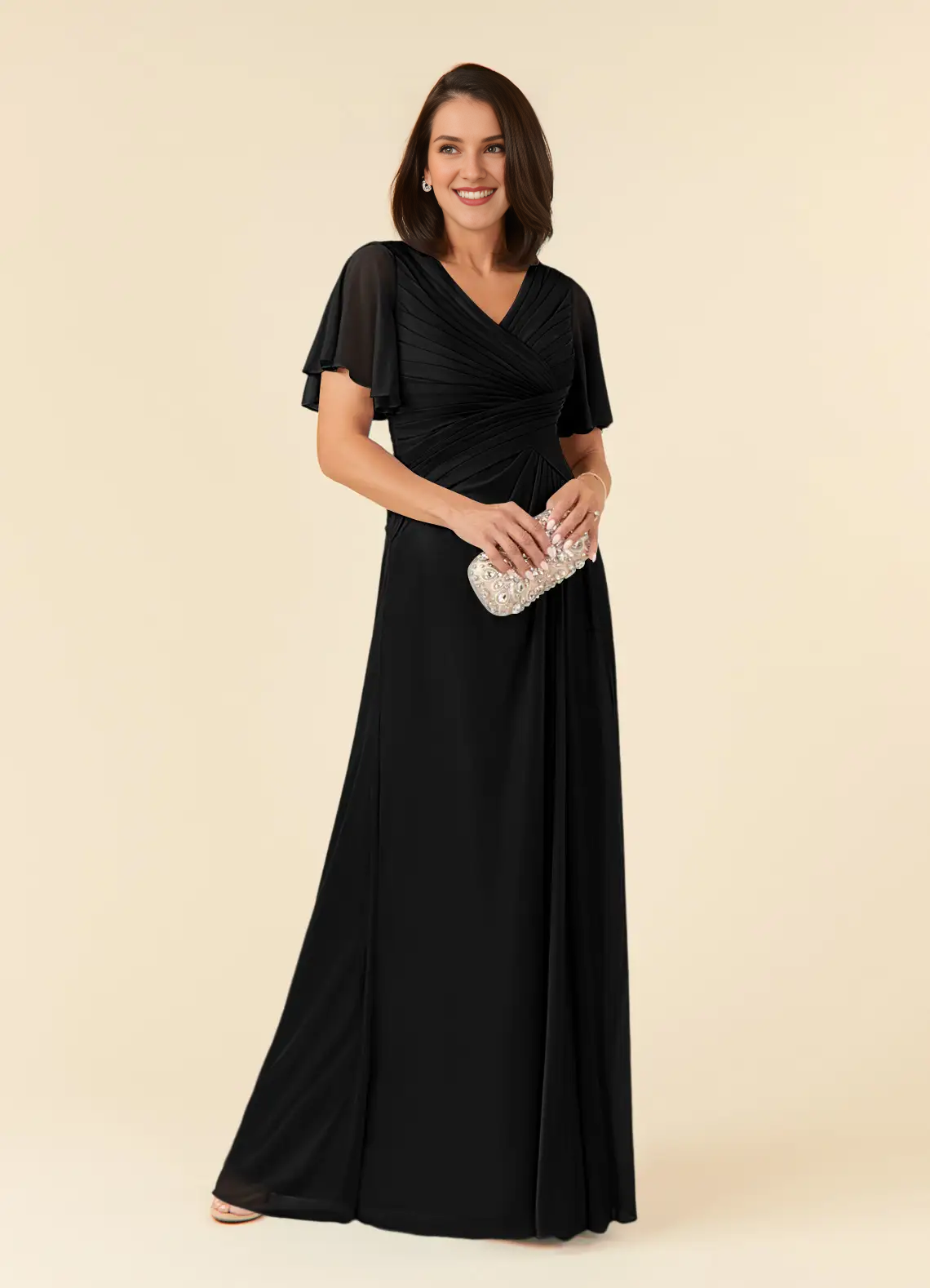 A-line V-neck pleated mesh and floor length mother of the bride dress