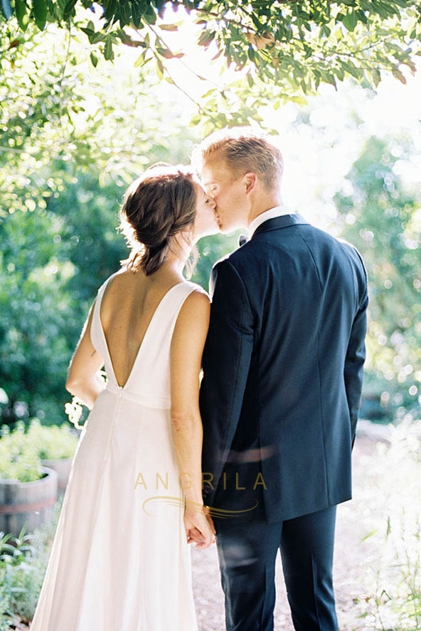 A-Line V-neck Sleeveless Split Wedding Dresses