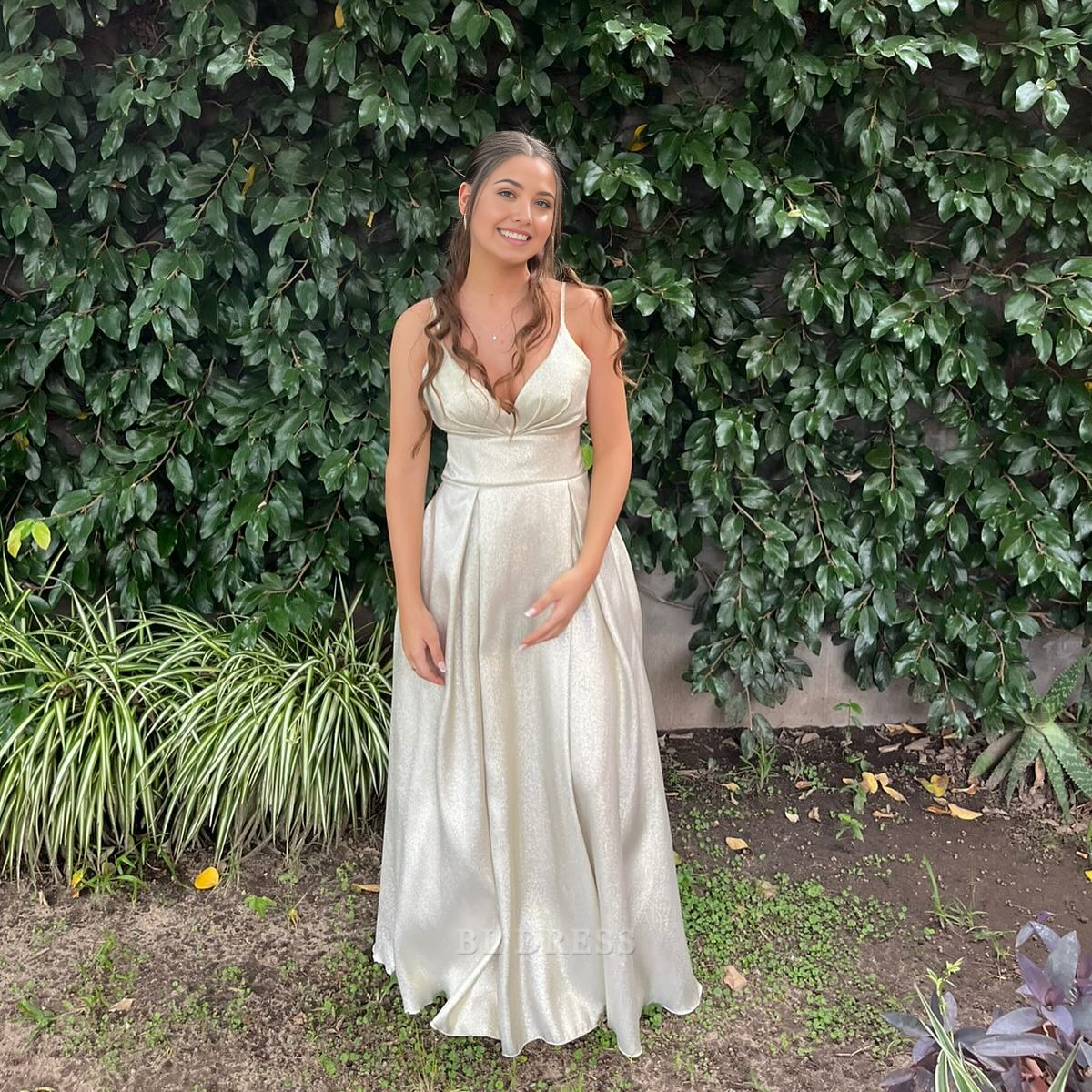 A Line V-Neck Spaghetti Straps Long formal dresses Bridesmaid Dresses evening gown Prom Dress