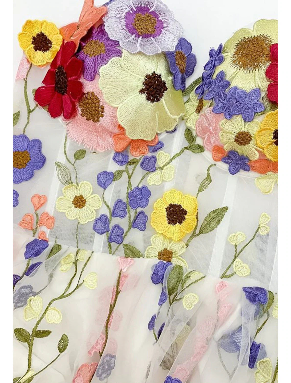 A-Line Wedding Guest Dresses Floral Dress Wedding Guest Floor Length Sleeveless Illusion Neck Wednesday Addams Family Cotton Backless with Embroidery Appliques