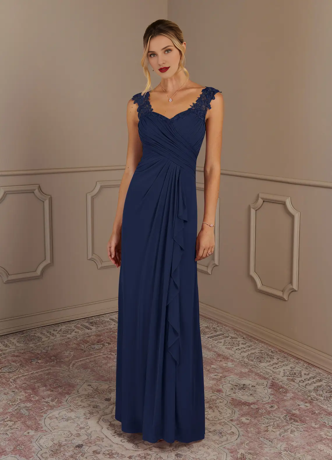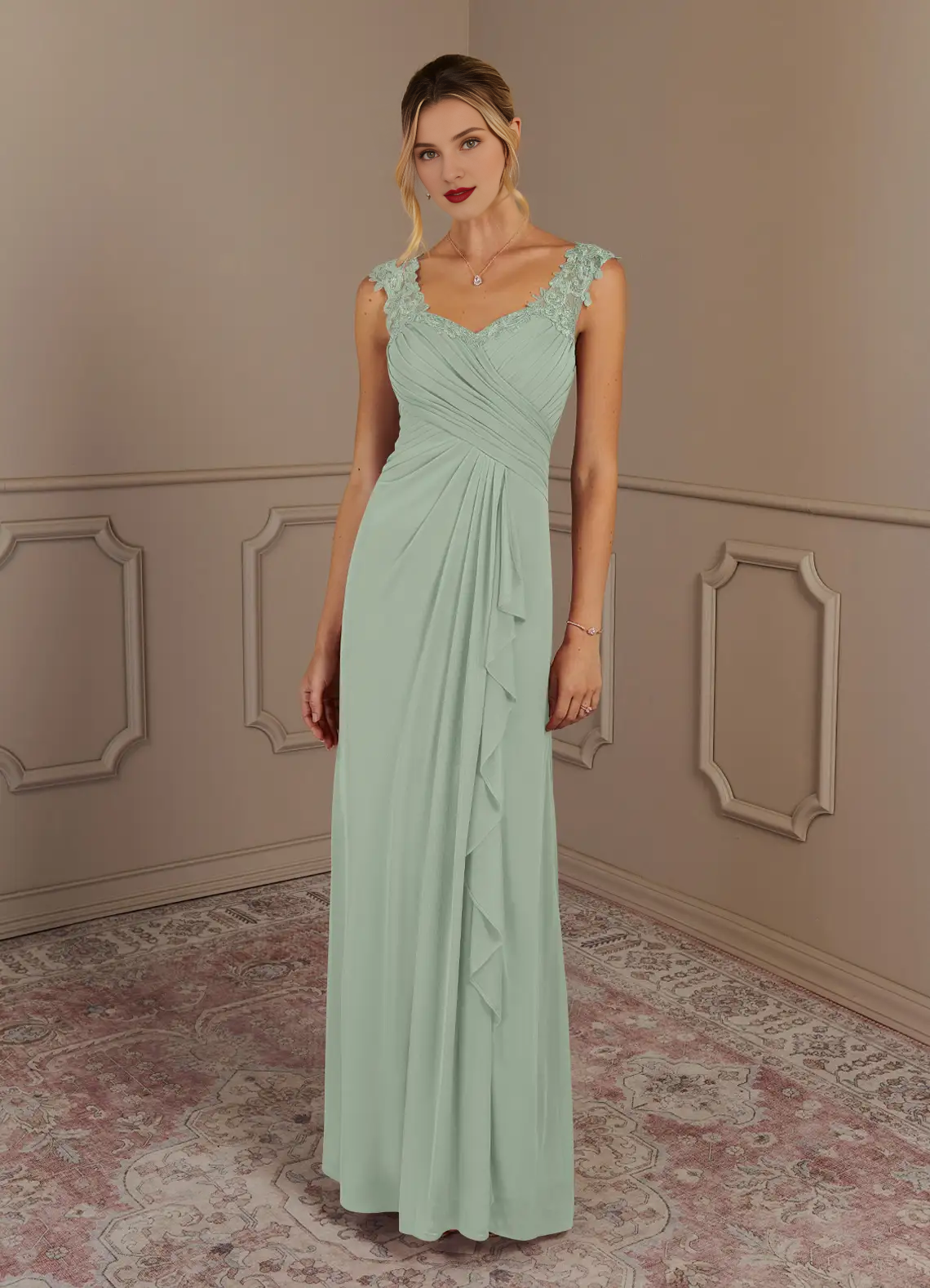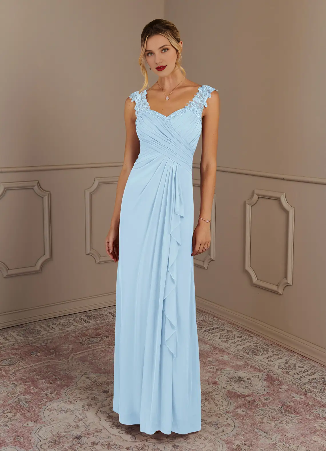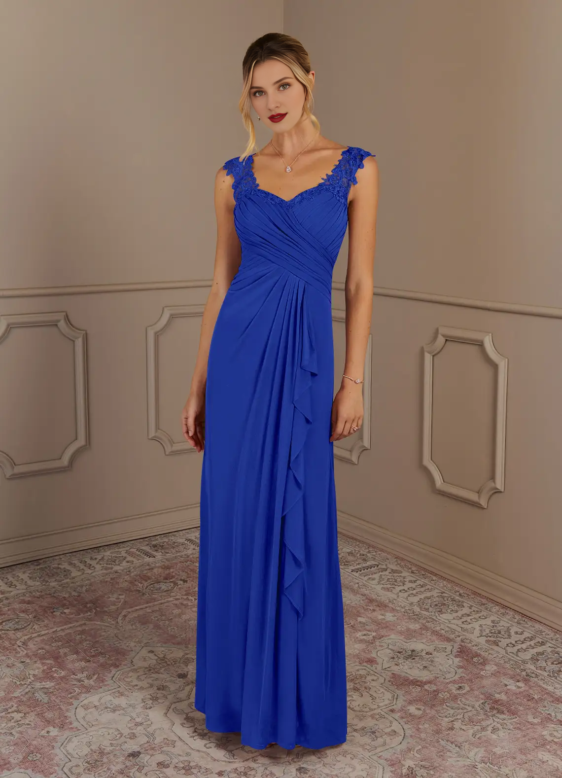 A-shaped heart-shaped collar pleated mesh fabric and floor length mother of bride dress