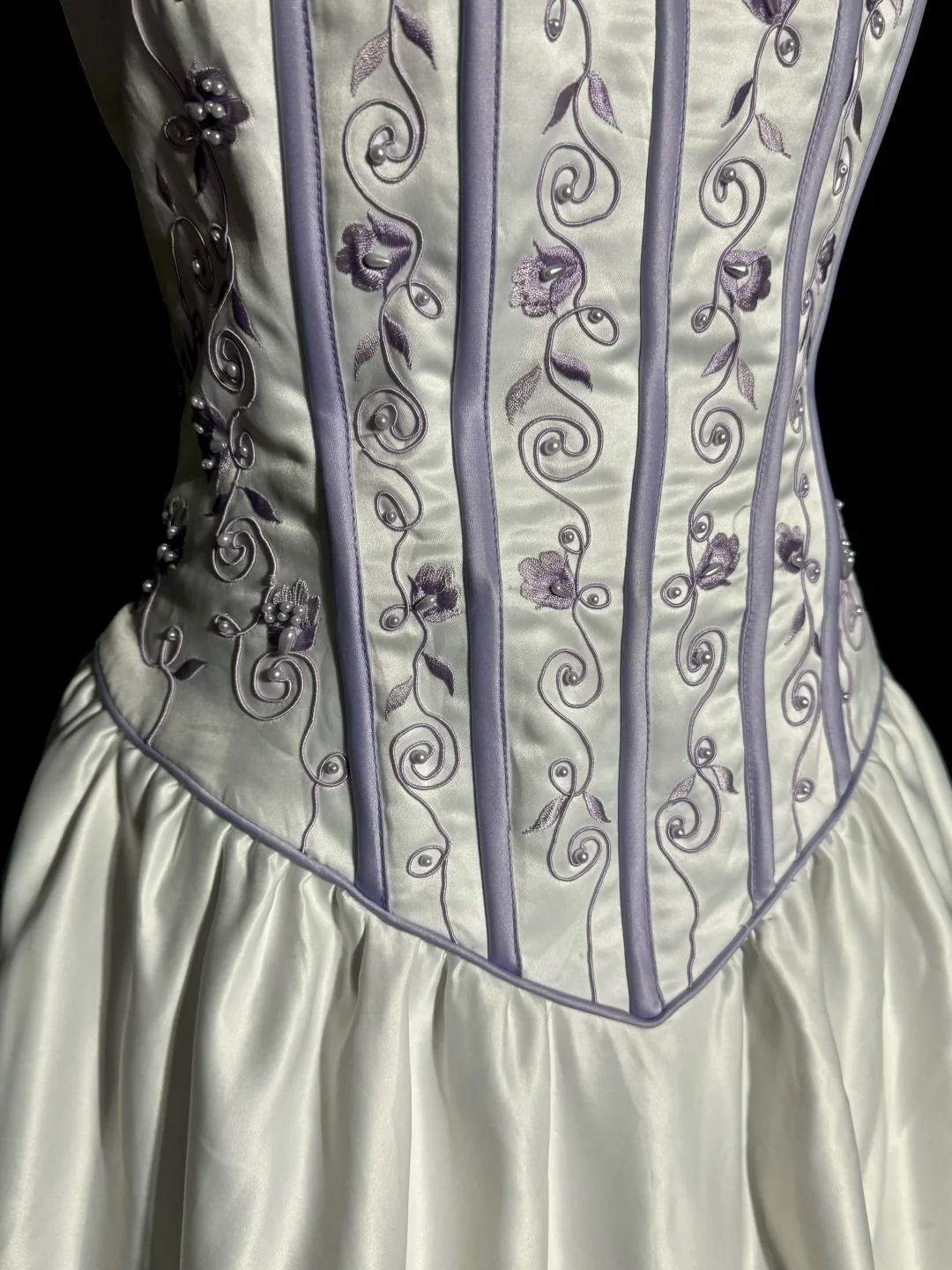 Occasion: Wedding Guest, Formal EveningStyle: Elegant, Beautiful BackSilhouette: A-LineHemline / Train: AsymmetricalNeckline: Boat NeckFabric: SatinClosure: Zipper UPSleeve Length: SleevelessEmbellishment: AppliquesBuilt-In Bra: YesBoning: NoTips: Professional dry cleaner only, Colors may vary slightly due to different monitor settings, Bodice color will be as pictured no matter...