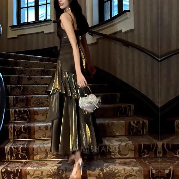 Elegant Ruffled Tiered Maxi Dress Long Prom Dress Charming Evening Party Dress Women's Dresses