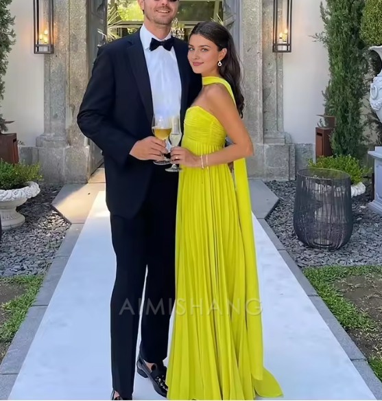 Aimishang Elegant Long Prom Dress Women Sexy Sleeveless Pleated Charming Evening Party Dress