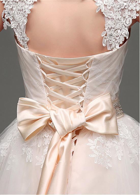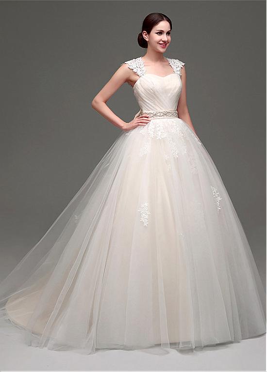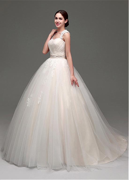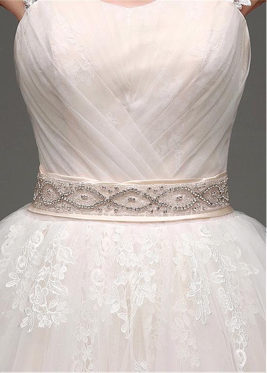 Ball Gown Sleeveless Beading Waistband Lace Applique Long Wedding Dresses