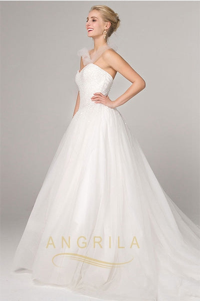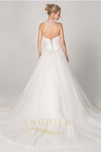 Ball-Gown Sweetheart Court Train Tulle Wedding Dress