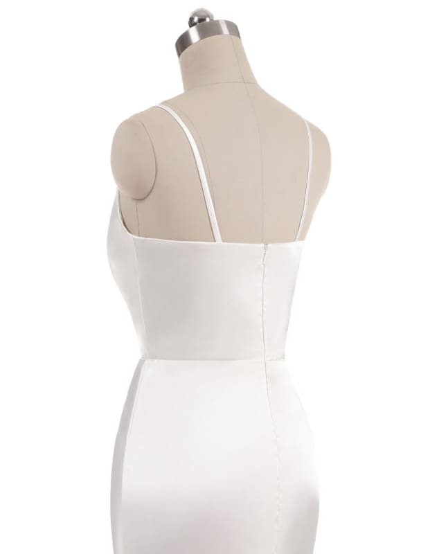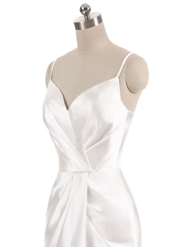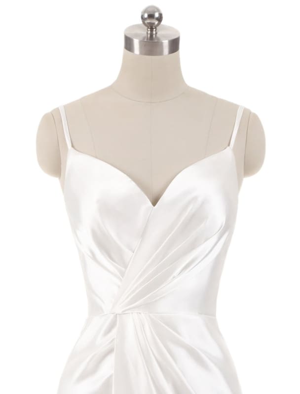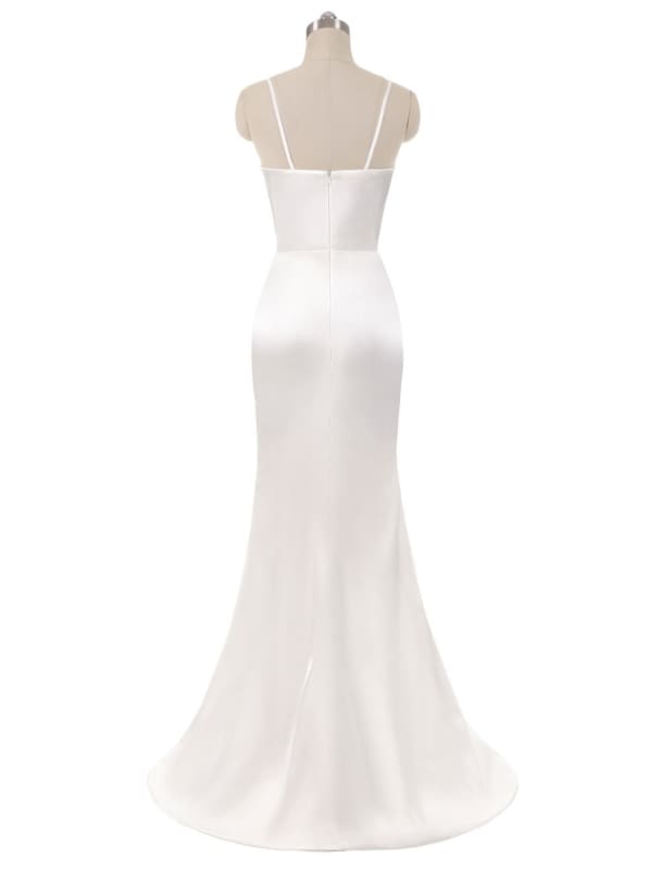 Women’s Long Satin Prom Dresses Spaghetti Straps Bridesmaid Dresses Formal Dress Ball Gowns with Slit - White