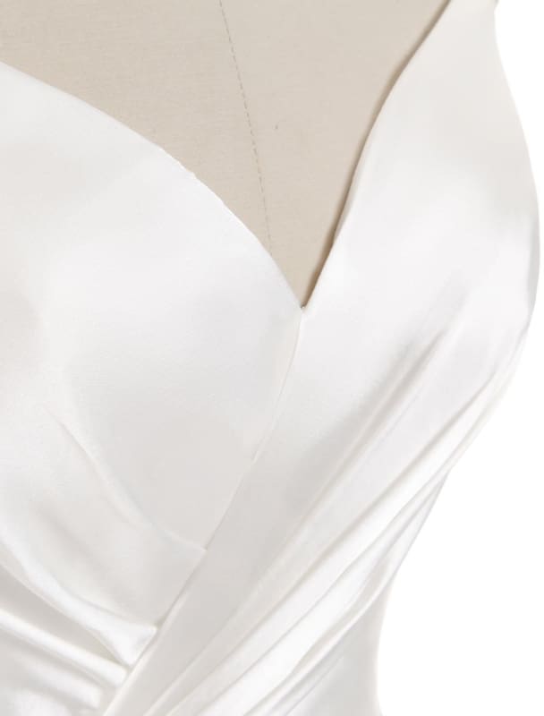 Style: Simple Neckline: V-neck Sleeve Length(cm): Short Wedding Dress Fabric: Satin Train: Chapel Train Origin: CN(Origin) For Pregnant Women: Yes Dresses Length: Floor-Length Back Design: Backless Item Type: Wedding Dresses Sleeve Style: Regular Built-in Bra: Yes is_customized: Yes Decoration: Pleat Fashion Element: simple Waistline: Natural Factors Silhouette: Ball Gown