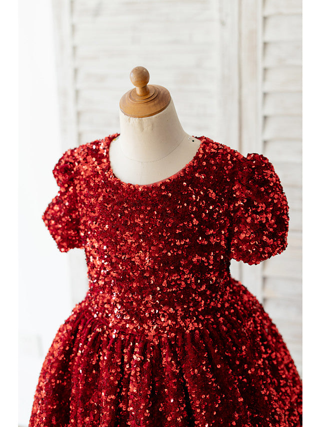 Beautiful Jewel Neck Ball Gown Flower Girl Dress With Sequined Short Sleeves