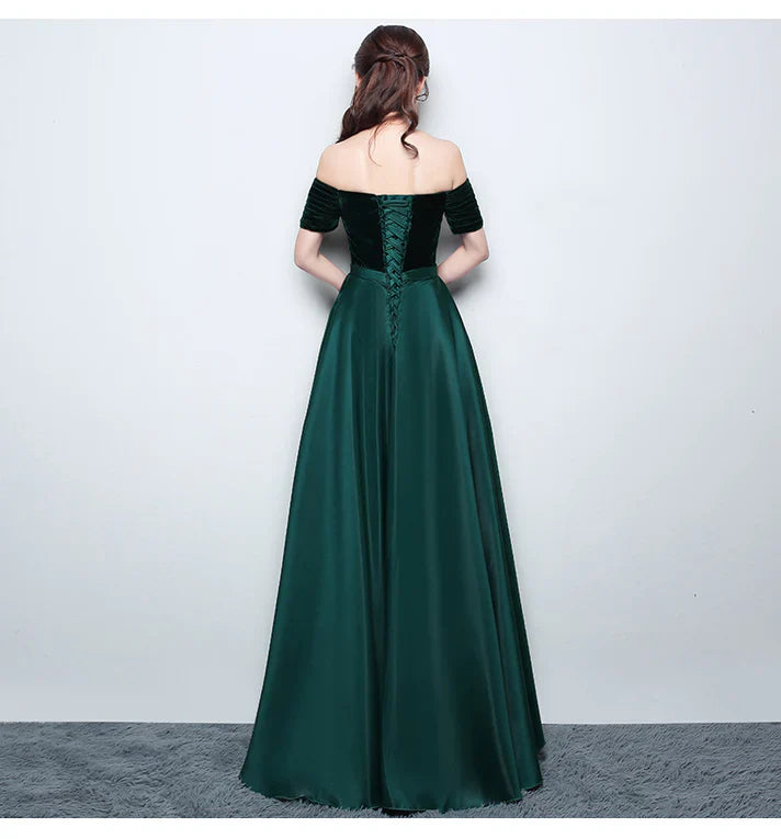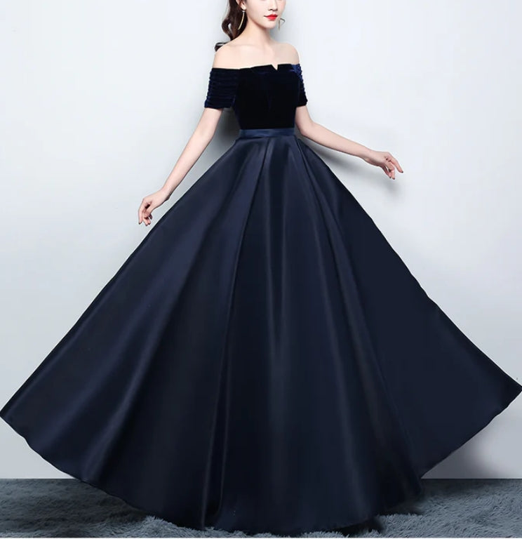 Beautiful Satin and Velvet Long Party Dress Simple Off Shoulder Prom Dress