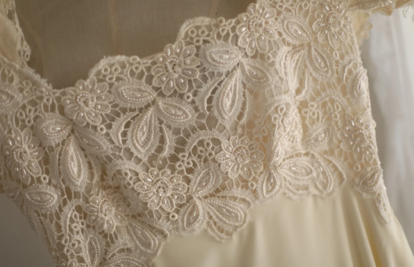 Beige Square Neck Chiffon Lace Empire Dress Long Prom Dress Beaded Wedding Dress ED01583