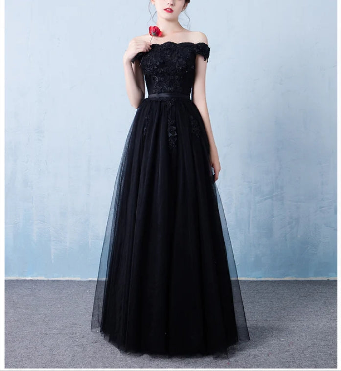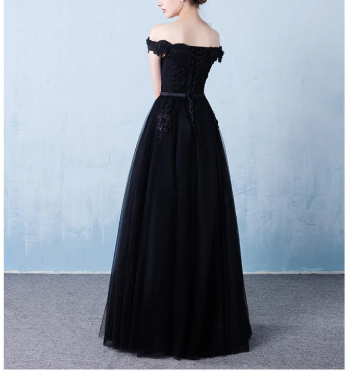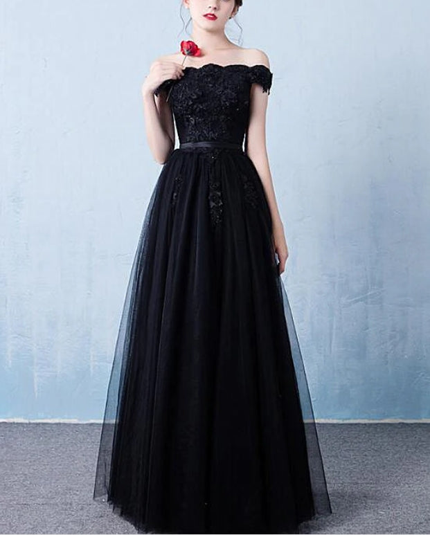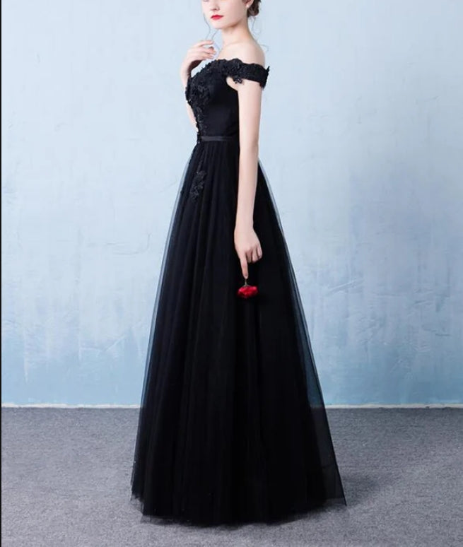 Black Off the Shoulder Tulle A-line Prom Dress New Formal Gown
